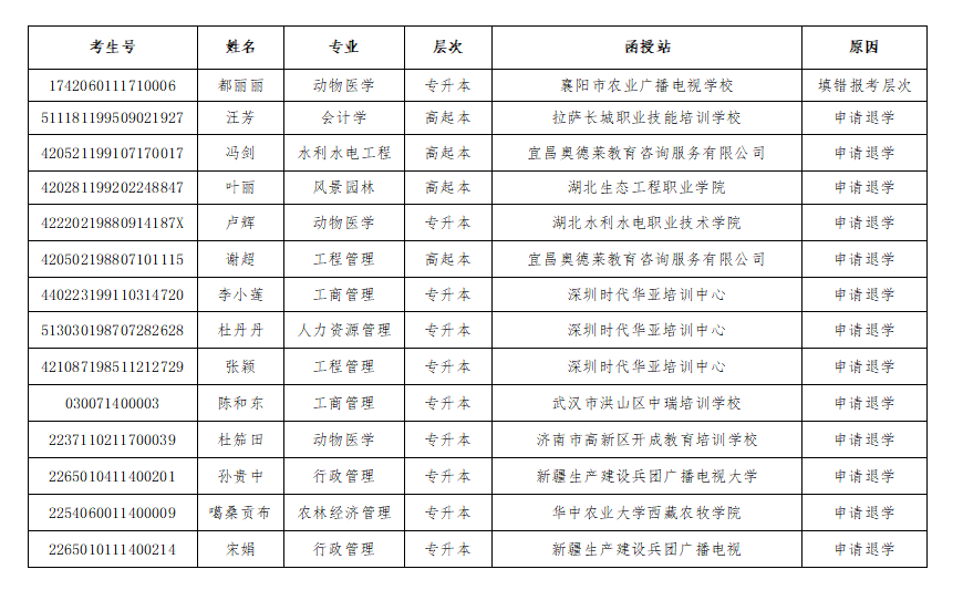 關(guān)于華中農(nóng)業(yè)大學(xué)成人高等學(xué)歷教育2023年下半年退學(xué)學(xué)生的公示